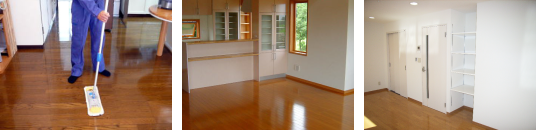 床掃除のことならなんでもご相談ください。迅速かつ丁寧な対応を心がけています。ポリッシャー、ウエットバキュームを使い、ワックス掛けまで。キレイに仕上げます。リノリューム、絨毯などの床にも対応します。