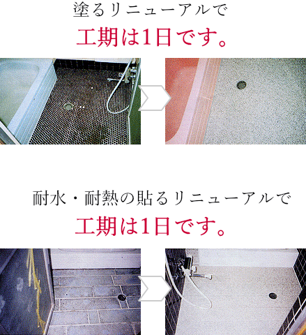 「浴槽」「タイル」「壁・天井」「床」をみんなまとめてリフレッシュ&リニューアル!! + 抗菌・防カビ